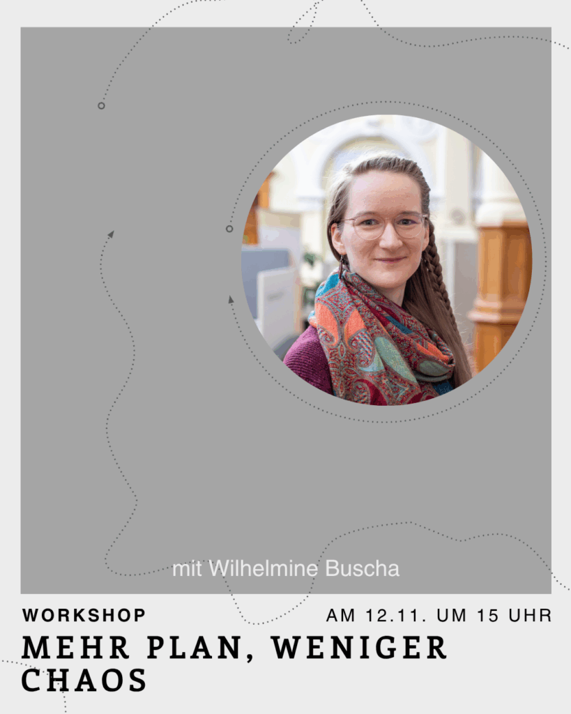 Was braucht es, damit aus einer guten Idee ein reales Projekt wird? In diesem Workshop geht es um die Grundlagen des Projektmanagements – von Methoden des Selbstmanagements bis zu der Zieldefinition und Zeitplanung deines Projektes / Vorhabens. Für alle, die sich klar strukturieren und ihre Projekte wirkungsvoll umsetzen wollen wird es eine Vorstellung von wichtigen Methoden und Tools geben, die euch dabei helfen sollen.